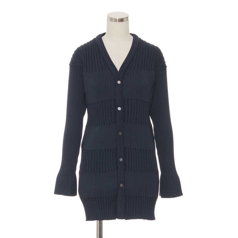 CFCLを象徴するFLUTEDシリーズのロングカーディガン。ストレッチ性の異なる2種類のリブを交互に編むことでユニークなシルエットを生み出しています。 ロゴ入りのドットボタンを使用し、ヒップが隠れるロング丈がエレガントな雰囲気です。