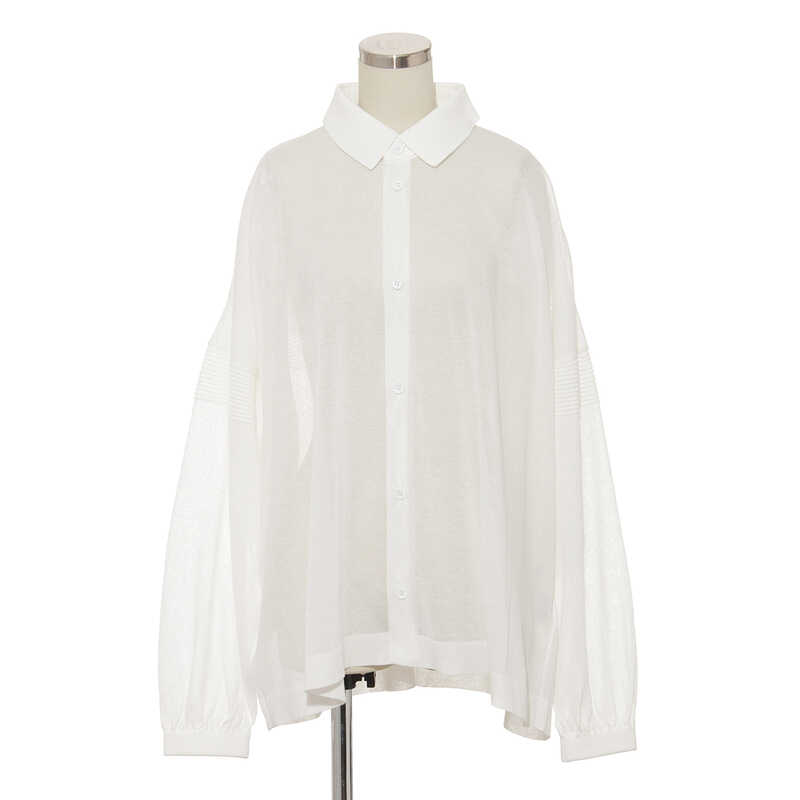 ガーゼのような肌触りが心地よいオーバーサイズのシャツ。シアー感のある素材が軽やかでエレガントな印象を与えます。立体的なフォルムの袖にタックを施し、構築的なアクセントを添えたデザインです。