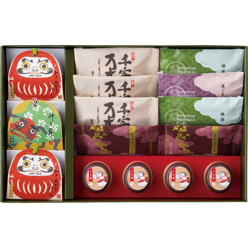 - 干支菓(午)×4、千客万来×3、おきあがりこぼし・さつまいも×各2、獅子舞×1、JAPANESE RED BEAN CAKE/抹茶×2・黒ごま×1