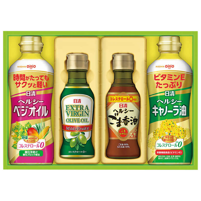 ヘルシーキャノーラ油・ヘルシーベジオイル×各1(各350g)、EXバージンオリーブオイル・ヘルシーごま香油×各1(各145g)