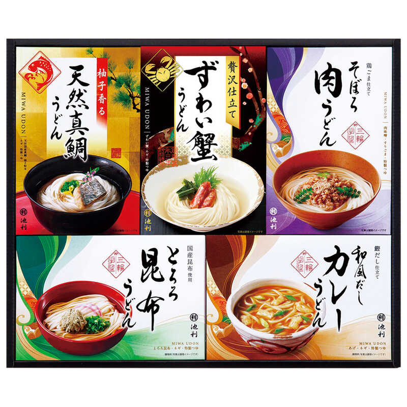 - ずわい蟹・天然真鯛・鶏そぼろ肉・とろろ昆布・和風だしカレー×各1(各めん60g・具材)