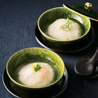 すりおろしたかぶとすけそうだらのすり身を合わせた生地に、ずわいがにの棒肉をのせ、ゆずで香り付けした「蟹のかぶらむし」。同じ生地に、にんじん、れんこん、鶏ひき肉を加えた「鶏肉と彩野菜のかぶらむし」。ふんわり優しい風味を、昆布とかつおの香り高い餡が引き立てる至福の一品は、“予約は1日1組限定”という〈羅漢〉らしい丁寧な味わいです。