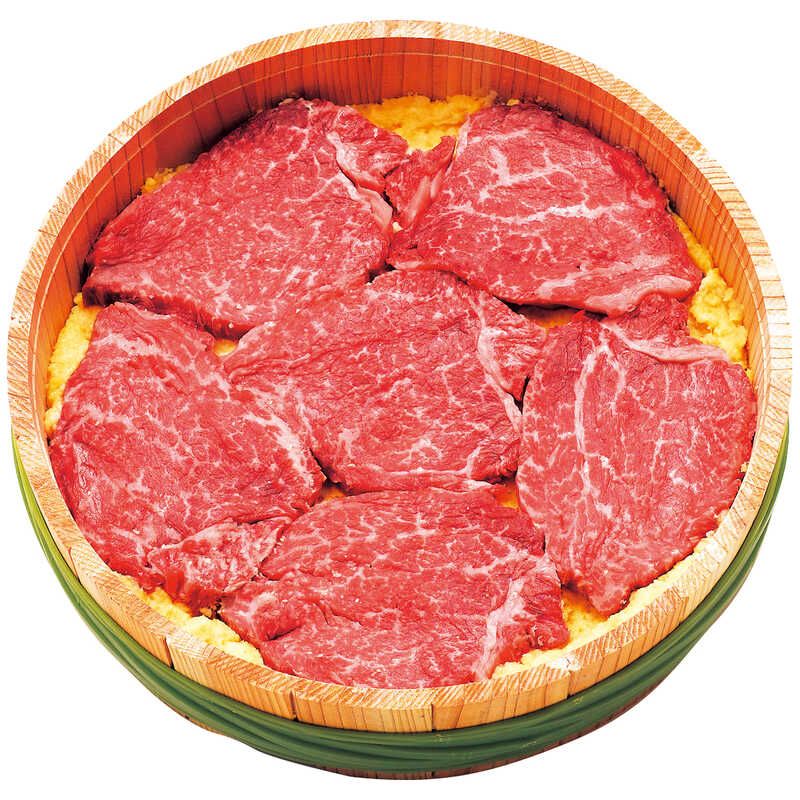 黒毛和牛の雌のヘレ肉やロース肉を独自配合の味噌に漬け込みました。柔らかく上品な味わいです。
