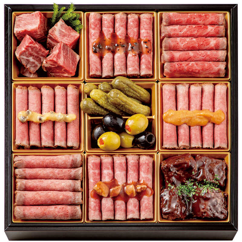 創業以来、ローストビーフ一筋にこだわりと情熱を注ぐ人気店。今回は、看板商品「ローストビーフ」の食べ比べをテーマに、7種の味わいを盛り込んだ肉おせちをご用意。