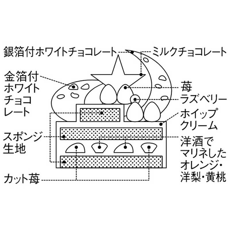 ニューヨークのグラマシー地区をテーマとする洋菓子ブランド。苺などのフルーツ、ホイップクリームをふんわりとした生地に重ね、聖なる夜をイメージさせる星と月のチョコレートで飾りました。