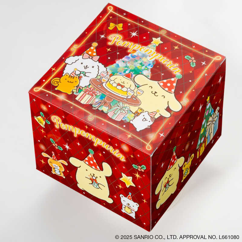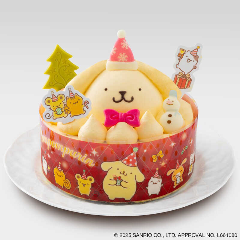サンリオの人気キャラクター「ポムポムプリン」の世界観をクリスマスケーキで表現しました。プリン風味クリームに合わせたカラメルシロップがアクセントです。オリジナルステッカー2枚付き。
