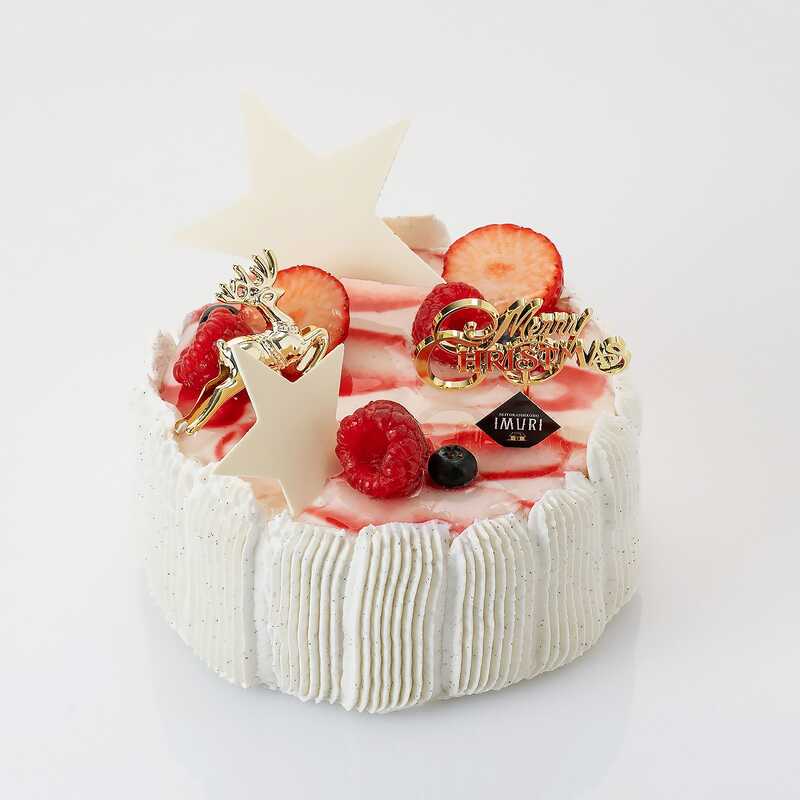 マダカスカル産バニラを使用した濃厚なバニラムースに、爽やかな酸味の3種類の赤いフルーツのジュレとピスタチオのババロアを合わせたクリスマスケーキです。