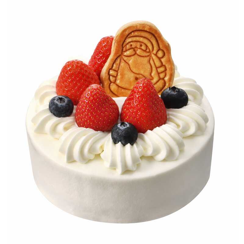 ふんわりスポンジと口どけのよいコクのある生クリームに、フレッシュな苺とブルーベリーを飾りました。ビスケットのサンタクロースが、クリスマスを盛り上げます。