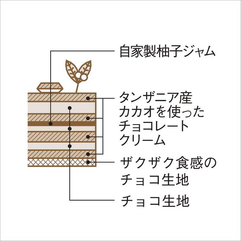 タンザニア産のカカオ豆から作った自家製チョコと糸島産の柚子を使ったチョコレートケーキ。