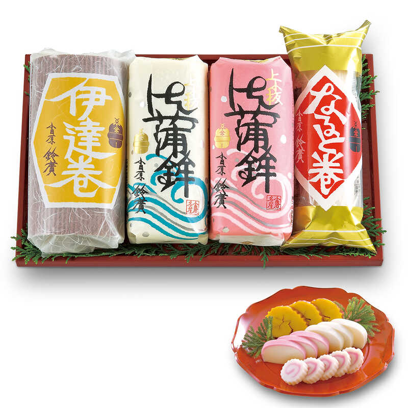 - 上小板蒲鉾/白・赤(各260g)・伊達巻ハーフ(280g)・なると巻(110g)×各1