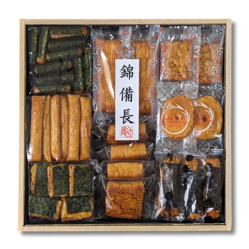 棒錦×55g、おに×4個、御古和×5枚、鉄火巻×40g、大判×5枚、錦棒×6本、清姫×24g、生のりづつみ×5本