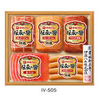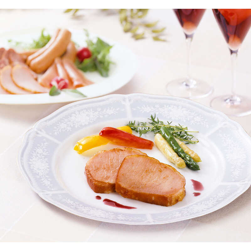 - 特選ロースハム320g、やわらか焼豚185g、特選燻しポークハム180g、生ハム45g、特選あらびき燻しウインナー80g