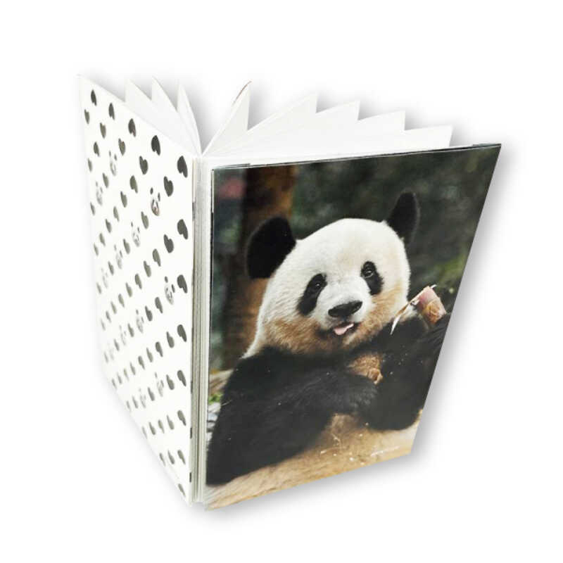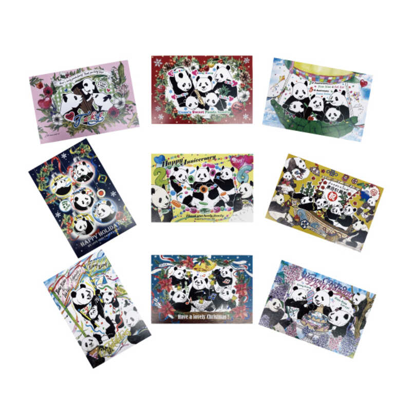 パンダのかわいいオリジナル御朱印帳を作りました!御朱印帳には過去9回実施の〈クリスタルアート〉の歴代パンダスタンプラリーの完成イメージがデザインされたポストカードが付いてくるほか、シャンシャンのビニール巾着もセットで販売!今だけのパンダの魅力が詰まった限定セットです。