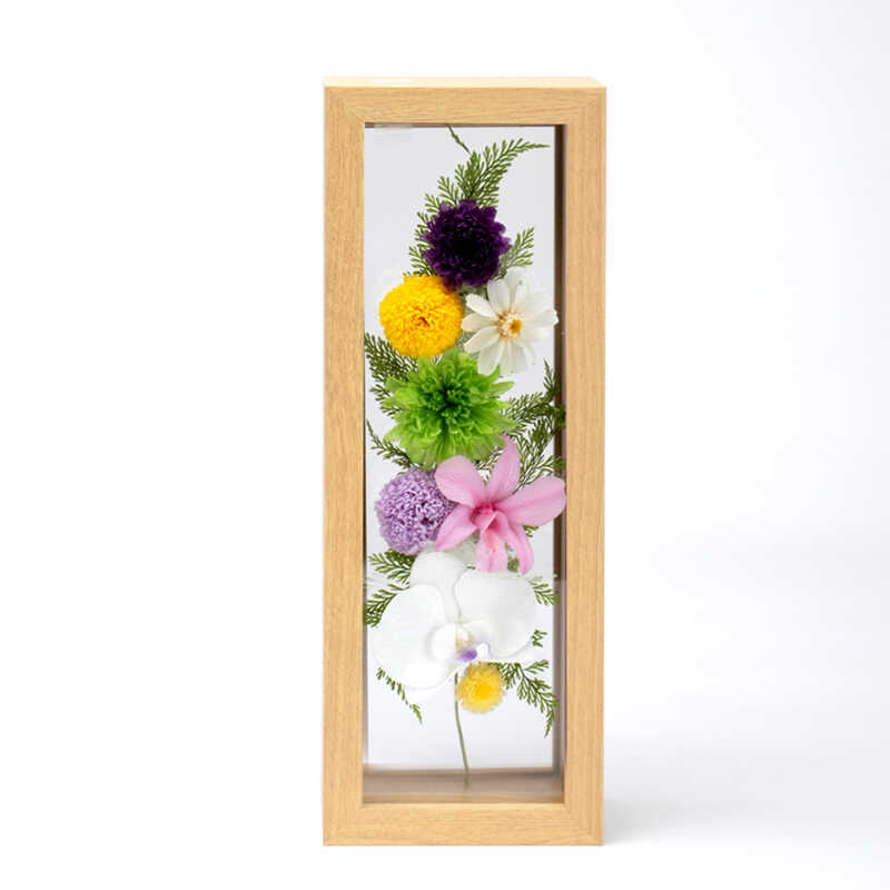 フレームの中に納まった絵画的なプリザーブドフラワーです。