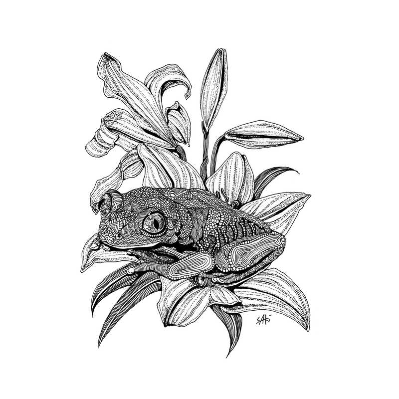 生き物をそのまま描くのではなく、その形と陰影を日本の伝統文様やその他さまざまな模様を