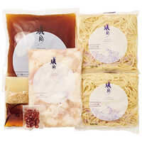 - スープ(500g)・もつ(300g)・ちゃんぽん麺(150g×2)(計300g)・おろしにんにく(30g)・ごま油(15g)・ごま(10g)・タカノツメ(1g)×各1