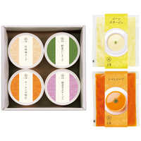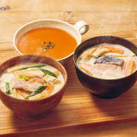 - 白味噌スープ・海老芋ポタージュ・粕汁・野菜だしスープ・トマトスープ・コーンポタージュ×各1