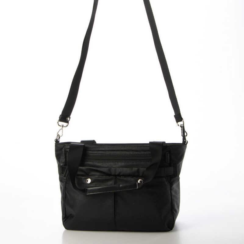 ブランドオリジナルのモノグラム柄をプリントした、ポリウレタンコーティング生地を使用しています。雨や水に強く、経年劣化に対する耐久性もある素材となっています。デイリーに使いやすいシンプルなデザインで、定番的に長く使えるようなアイテムです。取り外し可能なショルダーストラップを使えばトートバッグからショルダーバッグとして持ち変えられる2WAY仕様です。本体内側には、B5ノートがぴったりと収まるサイズ感。ポケットは8個と収納スペースが豊富で、使っていても疲れにくいようにバッグ単体で約330gと軽量に仕上げました。