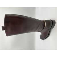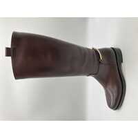 上品さと機能性を兼ね備えたジョッキーブーツです。上質レザーが、足元に上品な光沢を添え、幅広いシーンで活躍します。アンクル部分のメタルディテールがさりげないアクセントです。安定感のあるローヒールで長時間の着用にもおすすめです。