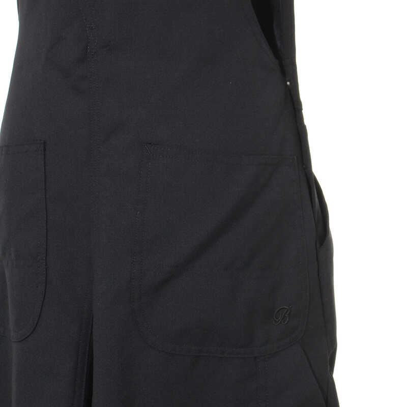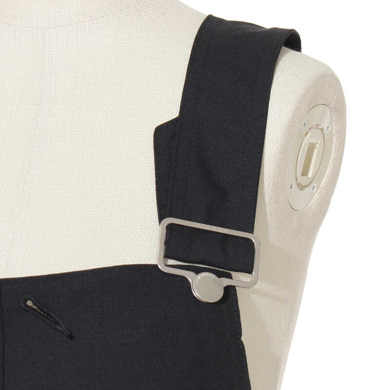 ウールトロピカル生地は、ファインメリノを使用し平織組織で作られた素材で、打ち込みが多くしっかりしていながらも軽やかでしなやかな質感が特徴。定番のマキシ丈スカート型サロペットは、たっぷりとフレアを効かせ、エレガントで洗練された印象に仕上がっています。