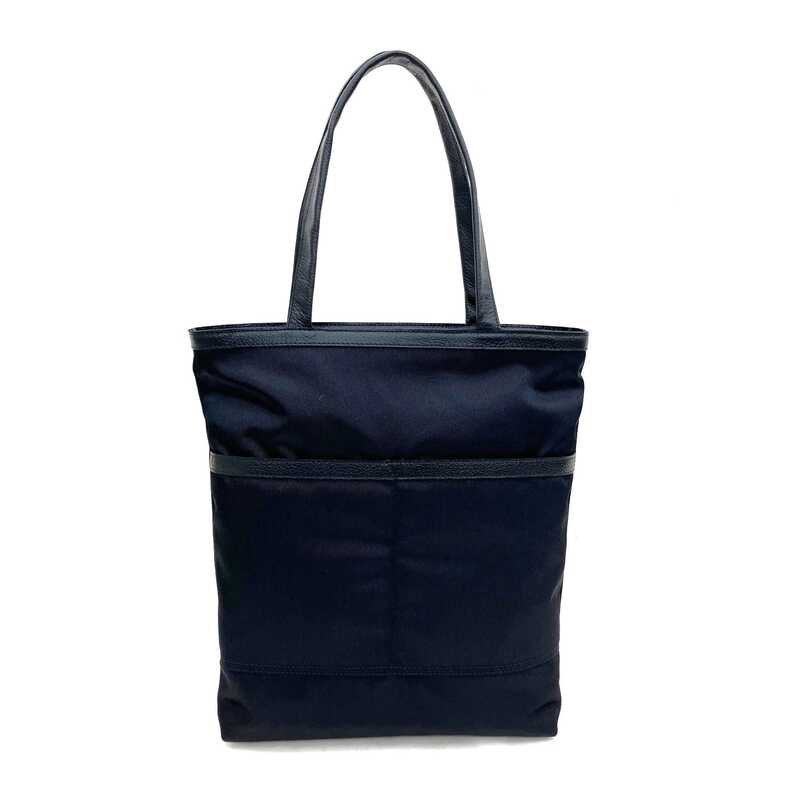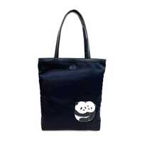 仲良しの双子パンダがさり気なくワンポイントでデザインされた縦型のトートバッグです。A4の書類が入るサイズで、光沢のあるナイロンはシンプルなデザインの中にも華やかさを醸し出します。
