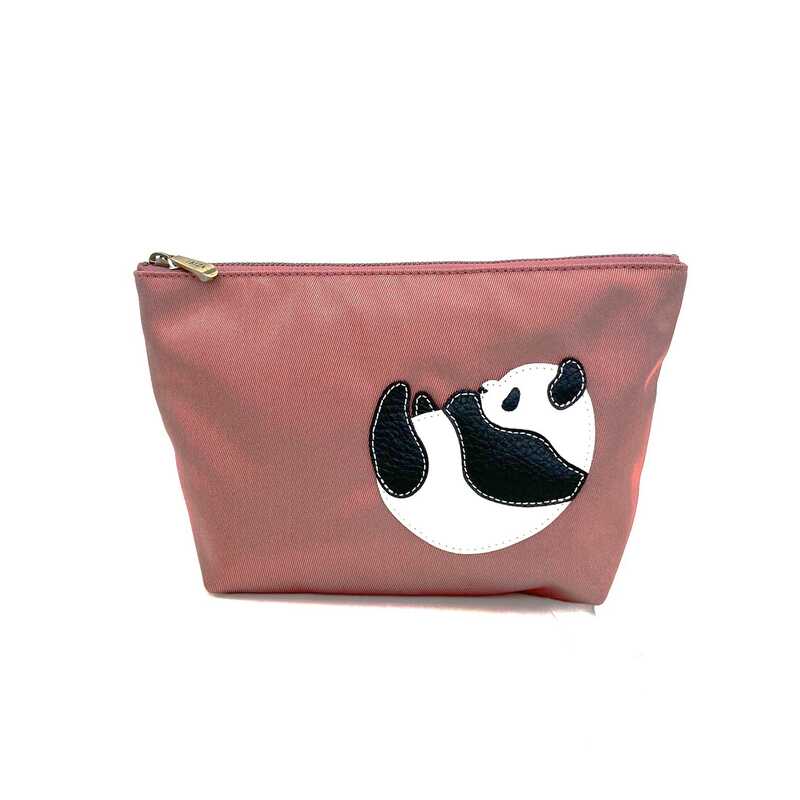 ワンポイントパンダのシンプルなナイロンポーチです。マチ幅も広くとっているので見た目以上にたくさんの物を入れることができます。普段のお出かけや旅のお供にも重宝します。