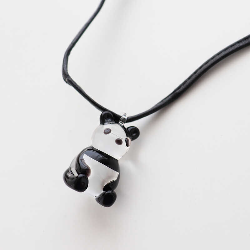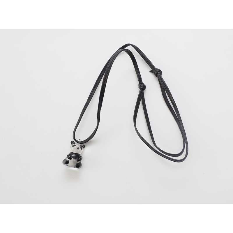 かわいいパンダチャームが最大のポイントのネックレス。上野を代表するモチーフの一つのパンダは、パンダファンのみならず多くの人が思わず「かわいい!」と言ってしまうはず♪ガラス製で繊細なつくりのチャームにカジュアル感のある革紐を組み合わせた、オールシーズンお使いいただけるアイテムです。また、チャームのパンダは、日本のガラス職人が一つ一つ手作りで丁寧に仕上げており、かわいさの裏側には手仕事のこだわりも詰まっています。革紐はスライドして長さを調整できるのもポイントです。