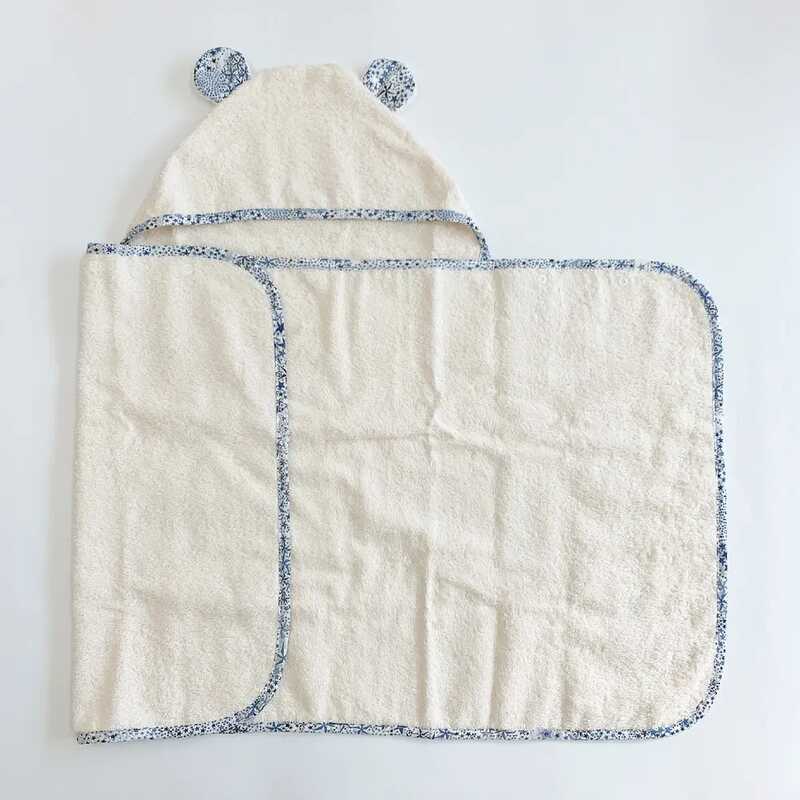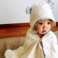 "オーガニックコットンをベースにリバティ柄の生地を使用したバスローブのギフトです。オーガニックコットンの優しい肌触りと雰囲気が特徴です。人気のリバティ柄をバインダーに使うことにより高級感のある仕上がりです。 赤ちゃんが使用するものなので日本製のオーガニックコットンを使用しています。生まれたてで肌の弱い赤ちゃんにも安心してお使いいただけます。 新生児~1歳頃まで男女の赤ちゃんとお母さんにおすすめです。今年初めにデザイナーが考案したバスローブは豪華で特別感があります。赤ちゃんの誕生を祝って贈る感動的な「出産祝い」として喜ばれます。 落ちついたクリームカラーのスライド式オリジナルボックスに入れてお届けします。表面に金色のロゴや星が箔押ししてあります。 オーガニックコットンと日本製のベビー服ブランドです。地元や日本の伝統素材も取り入れています。赤ちゃんの体を包みたくさんの「きもちいい。」を届けることで、生まれてきたことがうれしくなる。そんなウェアづくりに取り組んでいます。
