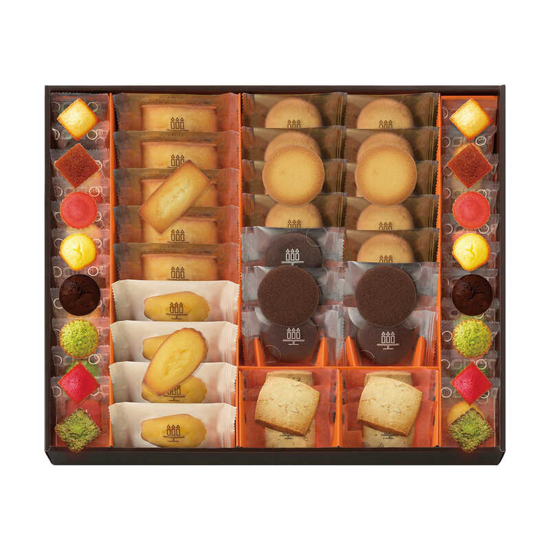 - フィナンシェ×5、マドレーヌ×4、一口焼き菓子×22(8種)、ラング ド シャ/プレーン×9・チョコレート×5、アーモンドクッキー×6