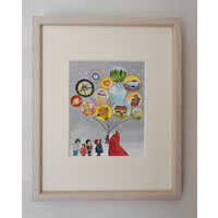 サンタクロースが魔法使いで、子どもたちにプレゼントを配る時、その場で選べたらこんなのはどうだろう、と描きました。ケーキやぬいぐるみ、花束などに加えて、豊かな森、豊かな穀物、豊かな海、時間、愛情など、子どもたちにプレゼントしたいものてんこ盛りです。