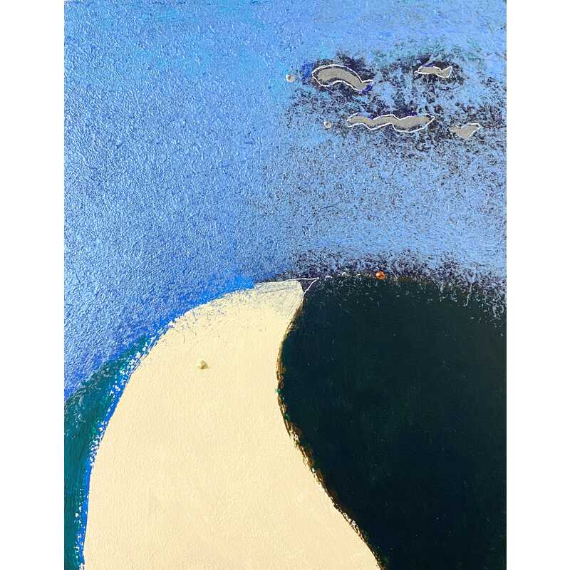 日常の視覚体験や目を閉じたときに浮かんでくるイメージを基に、抽象的なアクリル画を制作します。形を決めず、手を自由に動かしながら、過去に見た風景の記憶や感覚的なフォルムが自然に浮かび上がるような作品です。鑑賞者がそれぞれ自由に自分のストーリーを描き出せるよう、作品の中に空白や余地を残します。