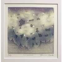 版木そのままの木目をそのまま活かしつつ、繊細に何度も色を重ねることで複雑な色味と木版画の温かみを感じることが出来る作品です。