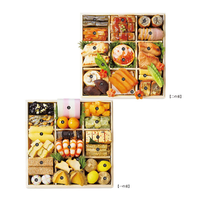 ※諸事情により献立内容、品目数、重箱サイズ、材質が多少変更になる場合もございます。あらかじめご了承ください。