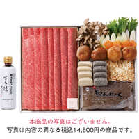 松阪牛ロース肉700g、カット野菜(白葱120g、春菊45g、まいたけ100g、椎茸6個、花形人参6個)、糸こんにゃく200g、焼き豆腐150g×2、粟麩4切れ×2、ごま麩4切れ×2、割り下300mL×2