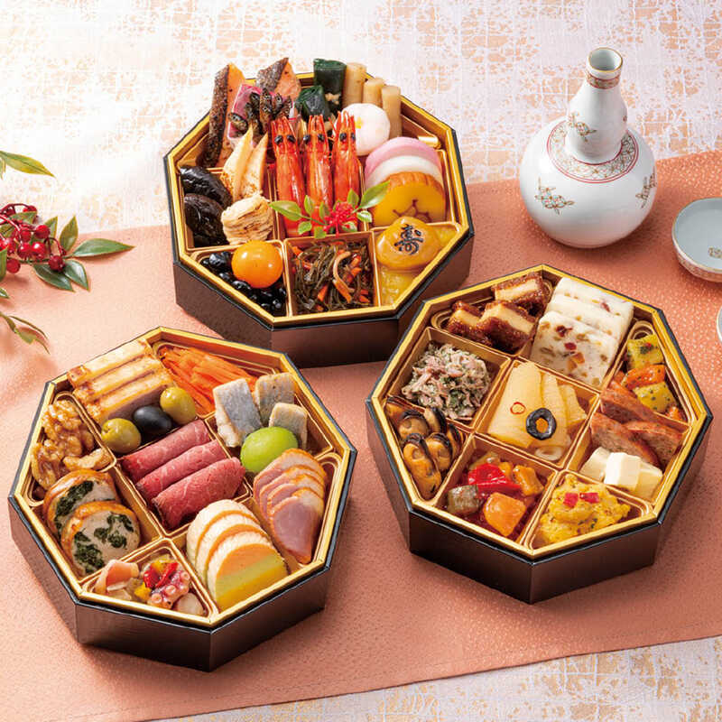 ※諸事情により献立内容、品目数、重箱サイズ、材質が多少変更になる場合もございます。あらかじめご了承ください。