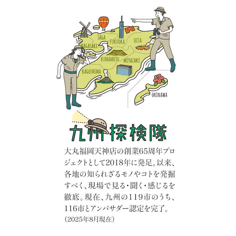 大丸福岡天神店の創業65周年プロジェクトとして2018年に発足。以来、各地の知られざるモノやコトを発掘すべく、現場で見る・聞く・感じるを徹底。現在、九州の119市のうち、116市とアンバサダー認定を完了。(2025年8月現在)