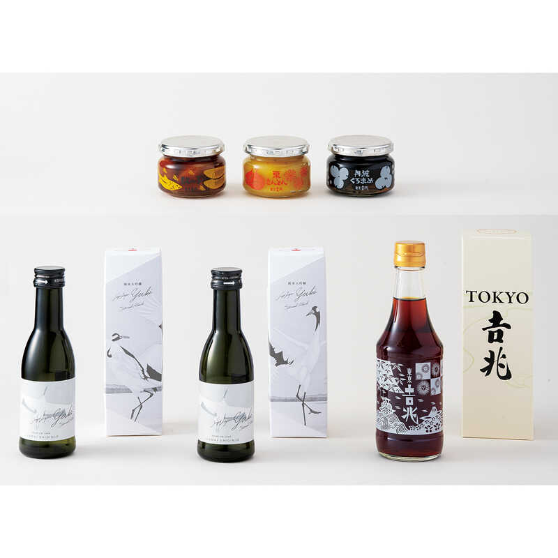 オリジナル日本酒・土佐酢・数の子・栗きんとん・ブランデー黒豆の瓶詰が付いた一段、銘店の逸品の味をお楽しみください。