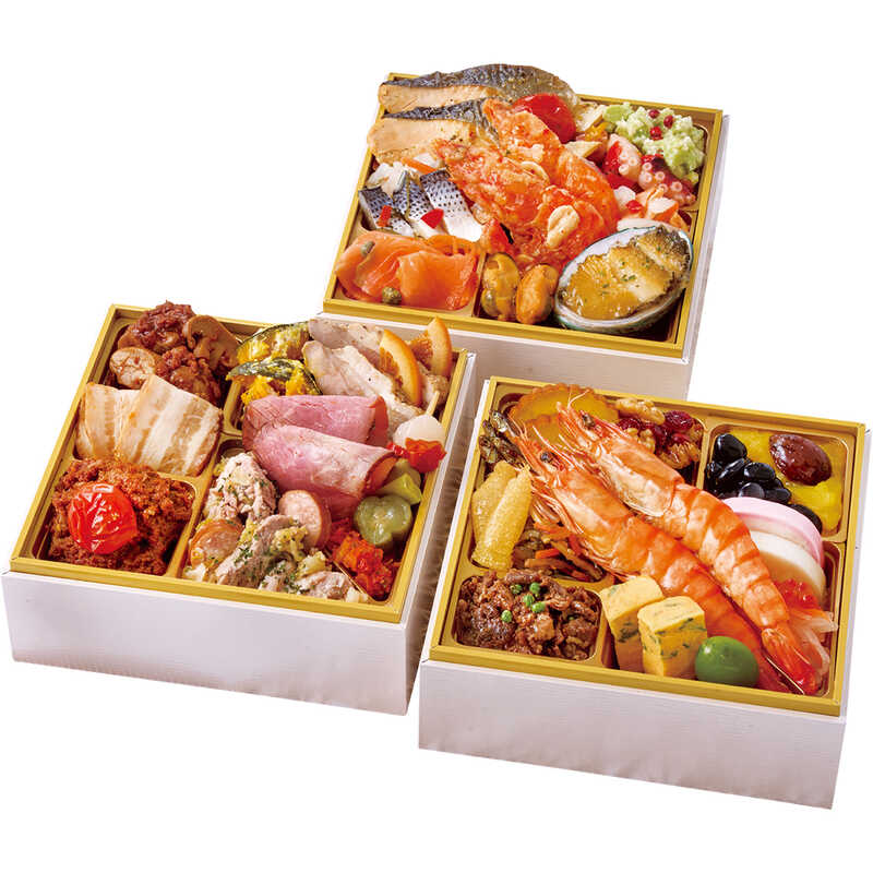 ※諸事情により献立内容、品目数、重箱サイズ、材質が多少変更になる場合もございます。あらかじめご了承ください。