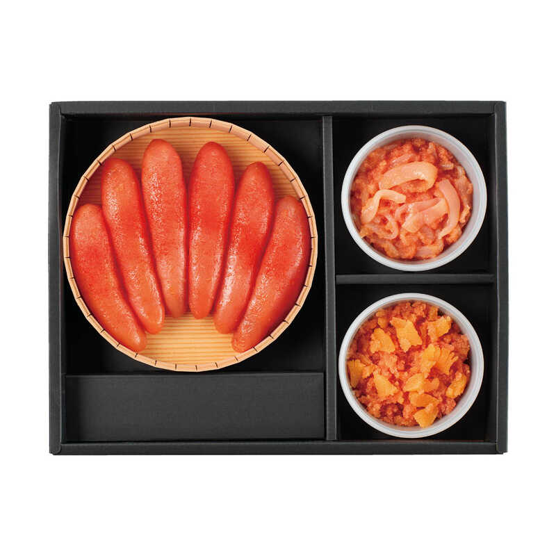 無着色辛子明太子(すけそうだらの卵:ロシア又はアメリカ産)(270g)、いかめんたい(90g)、数の子めんたい(90g)