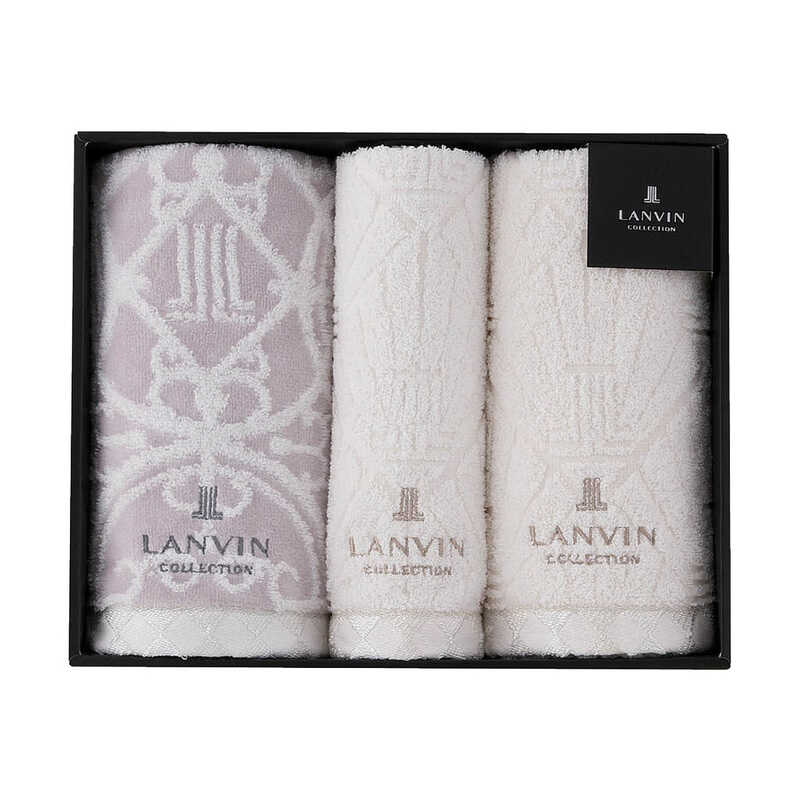 綿100%(スリット糸使用)、フェイスタオル×2/34×75cm、ウォッシュタオル×1/34×35cm