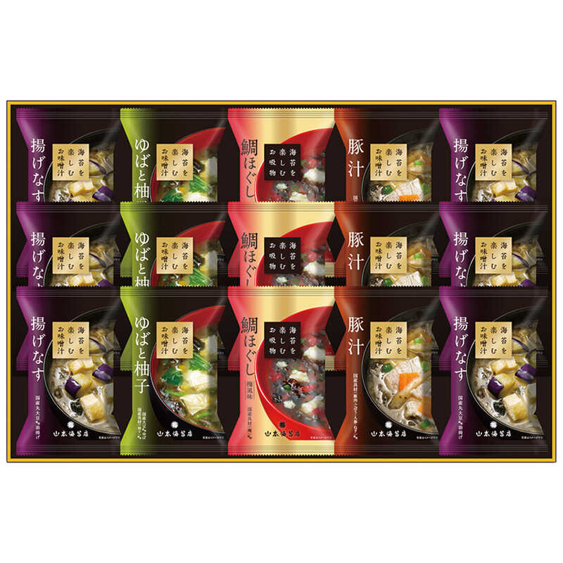 - お味噌汁/揚げなす×6・ゆばと柚子・豚汁×各3、お吸物/鯛ほぐし×3