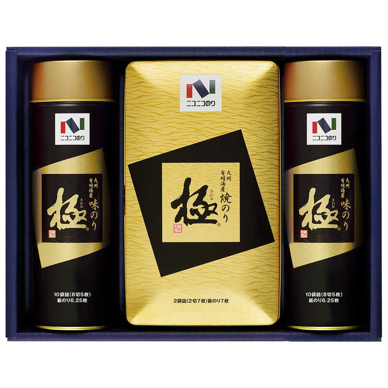 - 味のり丸缶10袋詰(8切5枚)×2、焼のり半裁缶2袋詰(2切7枚)×1
