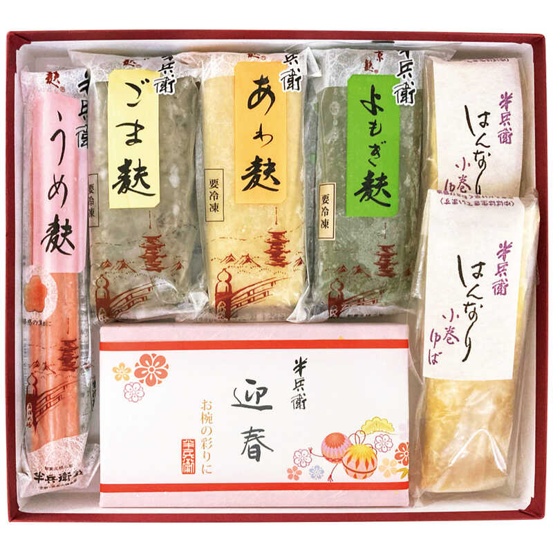 - あわ麸・よもぎ麸・ごま麸(各130g)・迎春なま麸(8個入)・うめ麸(60g)×各1、小巻ゆば(2本入)×2