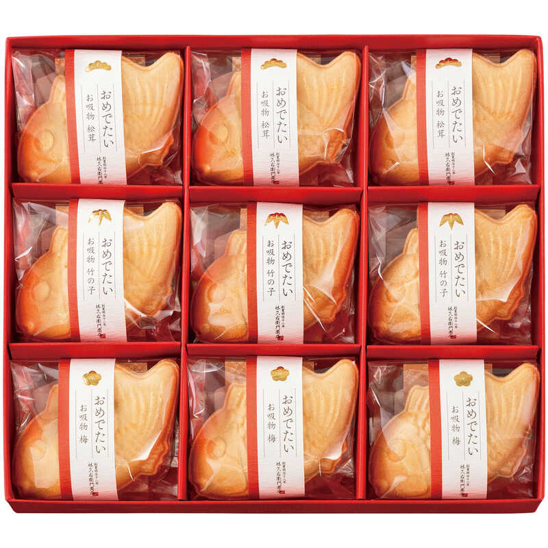 香ばしく焼きあげた縁起の良い鯛型もなか。お湯を注ぐと、松茸、竹の子、梅、それぞれの具材ととともに、上品なだしの香りが広がります。