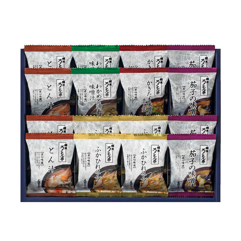 - ふかひれスープ・とん汁・茄子の味噌汁×各4、わかめと油あげの味噌汁・かきたま味噌汁赤だし仕立×各2