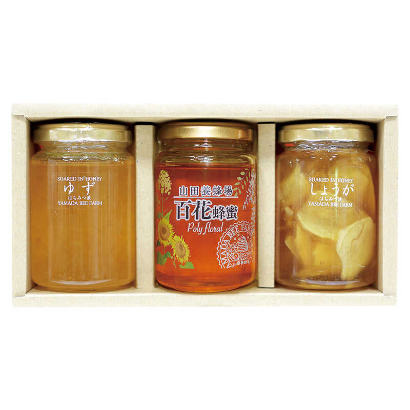 - しょうがはちみつ漬・ゆずはちみつ漬・百花蜂蜜(各200g)×各1 ※はちみつは、1歳未満の乳児には食べさせないようにしてください。