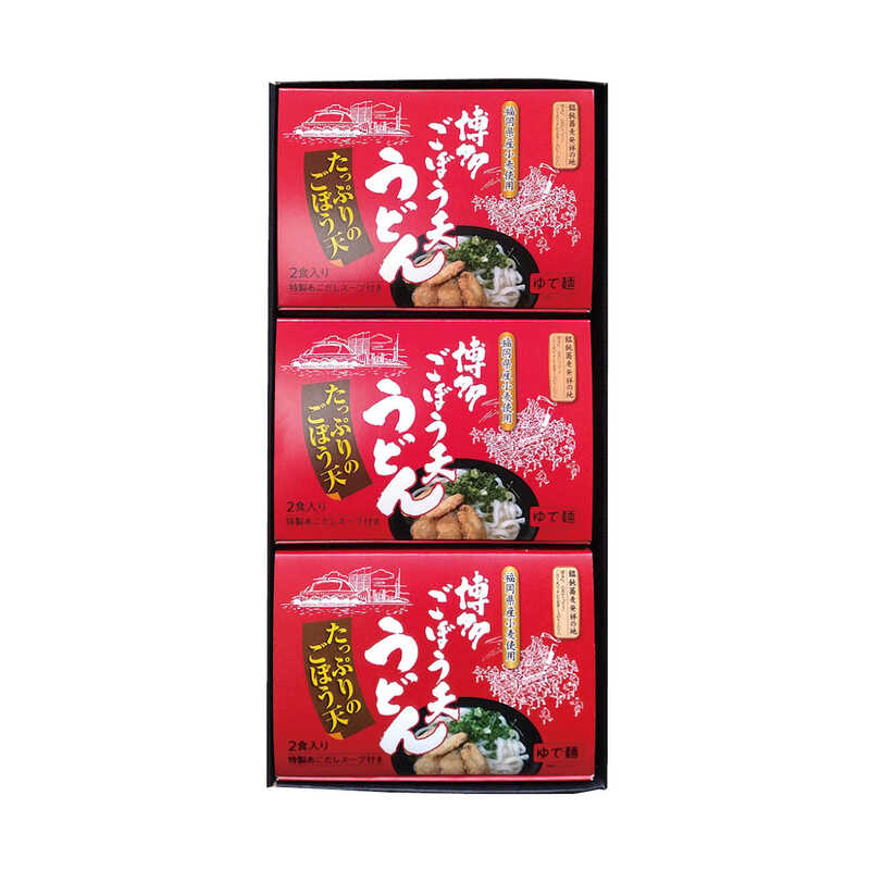 - うどん麺・あごだしスープ×各6、ごぼう天(40g)×3