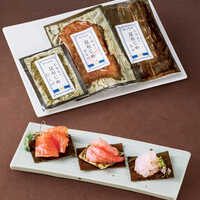 江戸時代から富山の魚を商う〈志満屋〉。活きの良い魚介を新鮮なうちに北海道真昆布で締め、うまみを引き出した富山名産の昆布じめ3種をセットにしました。