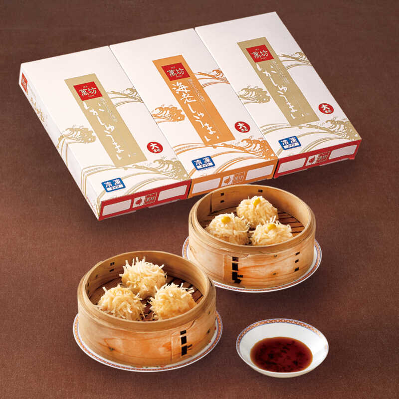 - いかしゅうまい大まる(8個入)×2、海老しゅうまい(8個入)×1、たれ・からし付き