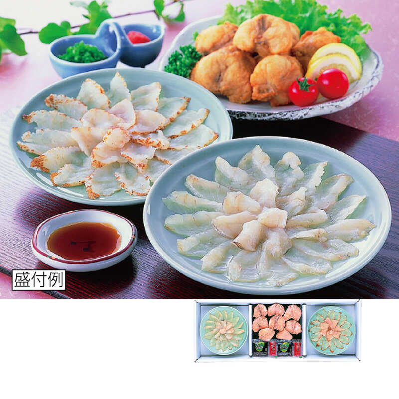 - まふぐ唐揚げ(200g)、まふぐたたき刺身(40g)、まふぐ刺身(30g)